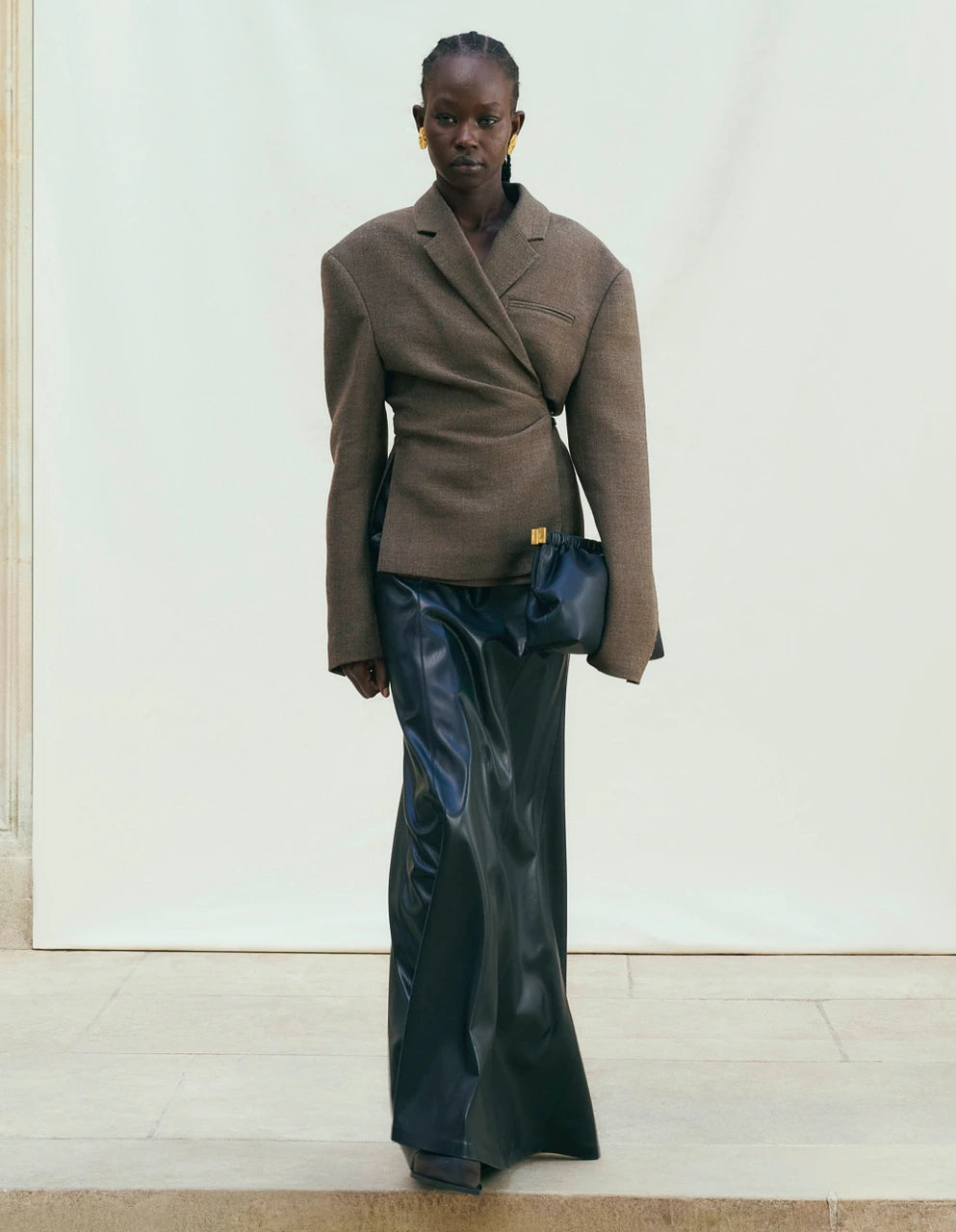 From draping to ruching and cropping and lengthening, Fall/Winter2023’s intent is to highlight different forms across ready-to-wear. Nanushka plays with traditional menswear tailoring and conventional layering, and explores the traditional female form; highlighting new perspectives and emphasizing new proportions.